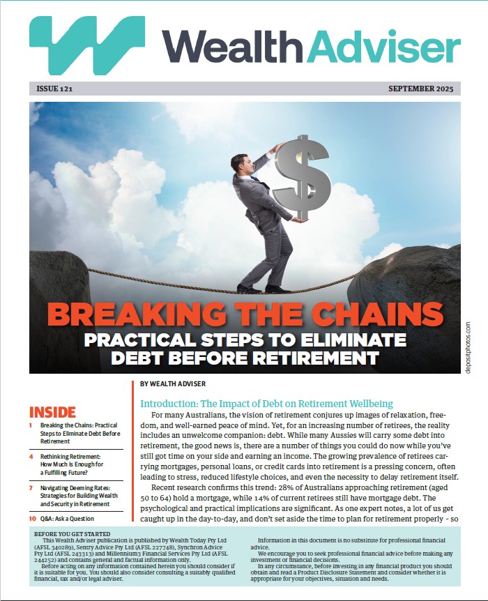 In this edition: Breaking the Chains: Practical Steps to Eliminate Debt Before Retirement. Rethinking Retirement: How Much Is Enough for a Fulfilling Future? Navigating Deeming Rates: Strategies for Building Wealth and Security in Retirement. Q&A: Ask a Question.